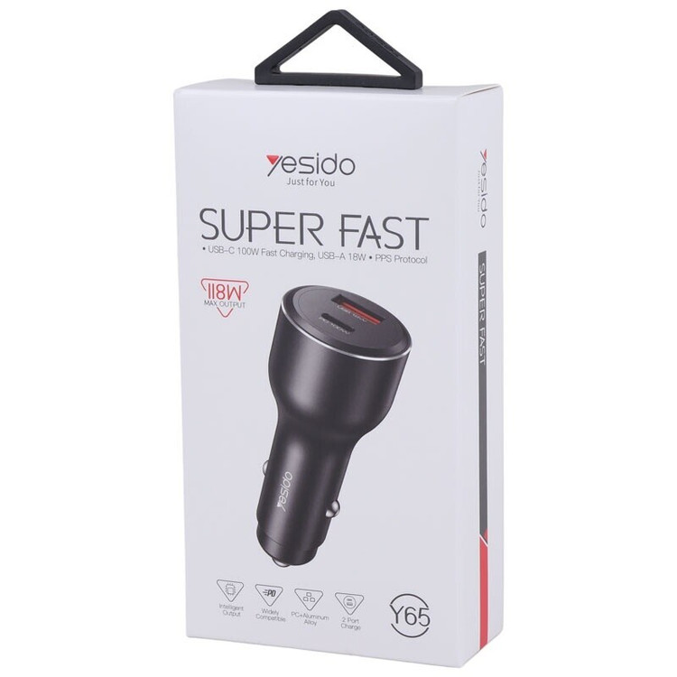 شارژر فندکی فست شارژ Yesido Y65 PD 5A 100W