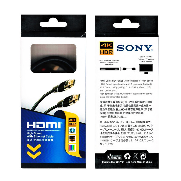 کابل HDMI» با دوشاخه نوع A. پشتیبانی از 15.2 گیگابیت بر ثانیه، 1080p (1125p)، 720p (750p)، 1080i (1125i) و «رنگ عمیق».